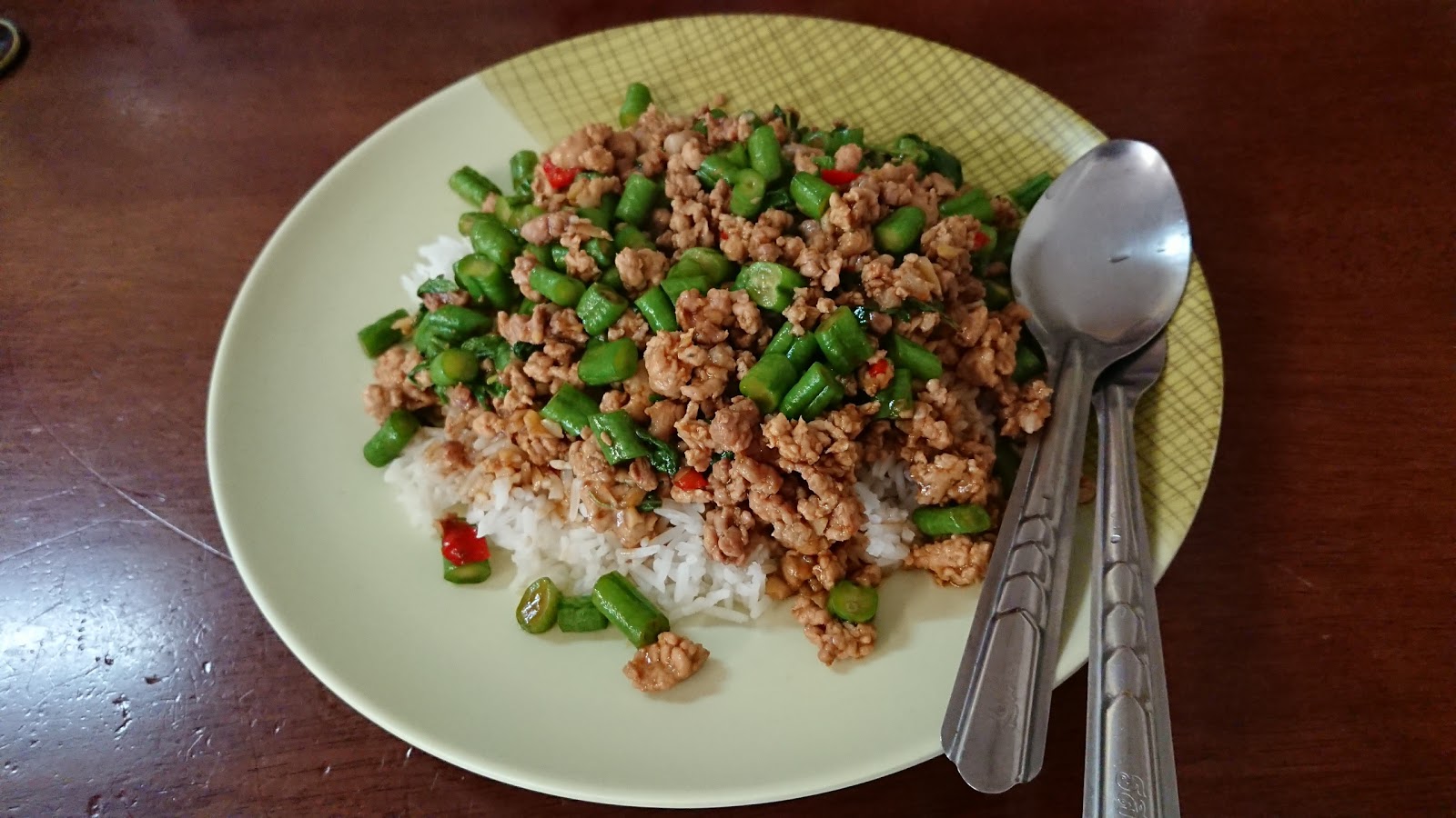 打拋豬肉飯,份量超多,不管是打拋還是飯,第一次吃到打拋能比飯還多的,四季豆很脆。