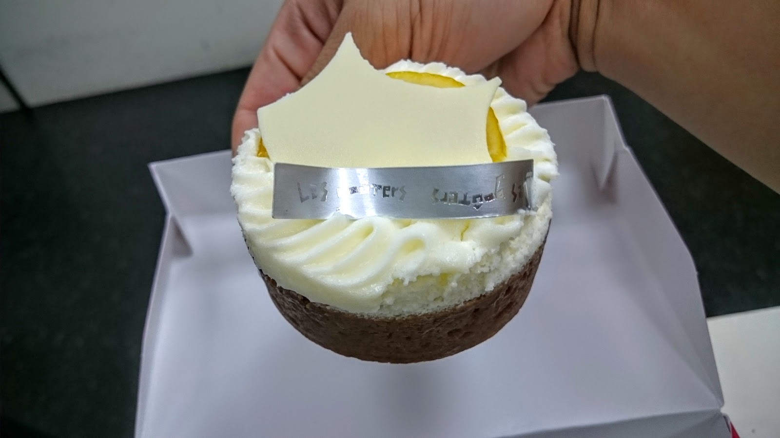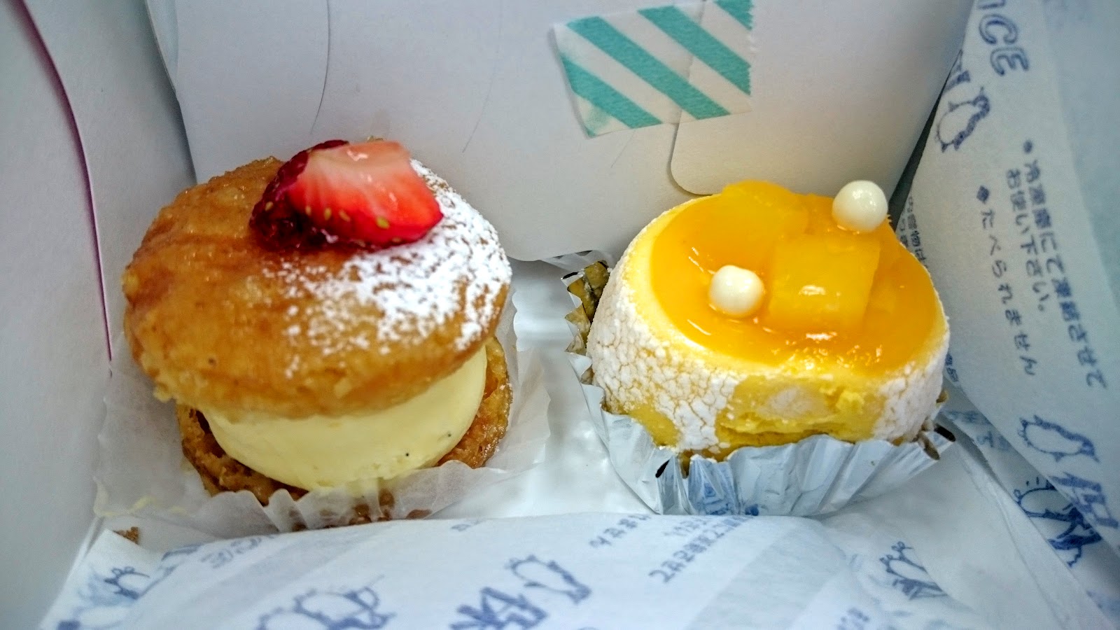 回國當天又帶了一盒回台灣,包的很用心,兩個小蛋糕下面都還有黏雙面膠固定。