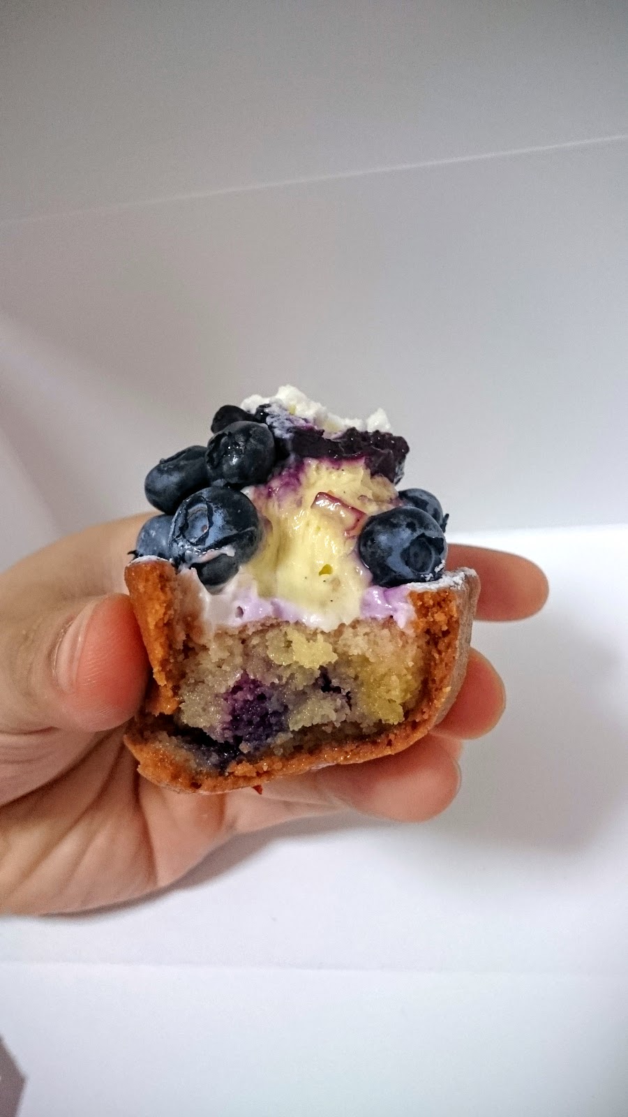 藍莓塔,乍看以為上面是堆滿了藍莓,其實裡面還有個卡士達小山,跟上面一縷泡沫的卡士達似乎是不一樣的口味,上面的卡士達偏清淡的奶味,下面是普通的濃厚卡士達,藍莓甜度很高,下面餡料有點像是磅蛋糕的感覺,最下面則再鋪了一層藍莓醬,可以吃到非常多重口感的一道。