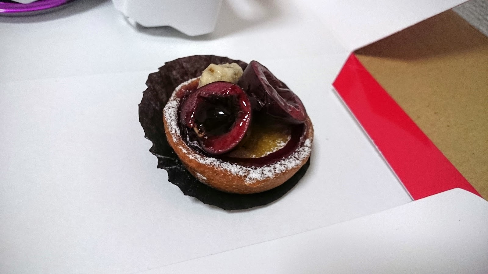 櫻桃塔,220日圓,上面有對半切的酒漬櫻桃,幾乎沒有酒味,只有酒香,櫻桃本身的味道和下面櫻桃餡的味道剛好中和了甜膩感,一次感覺了不同的櫻桃口感。