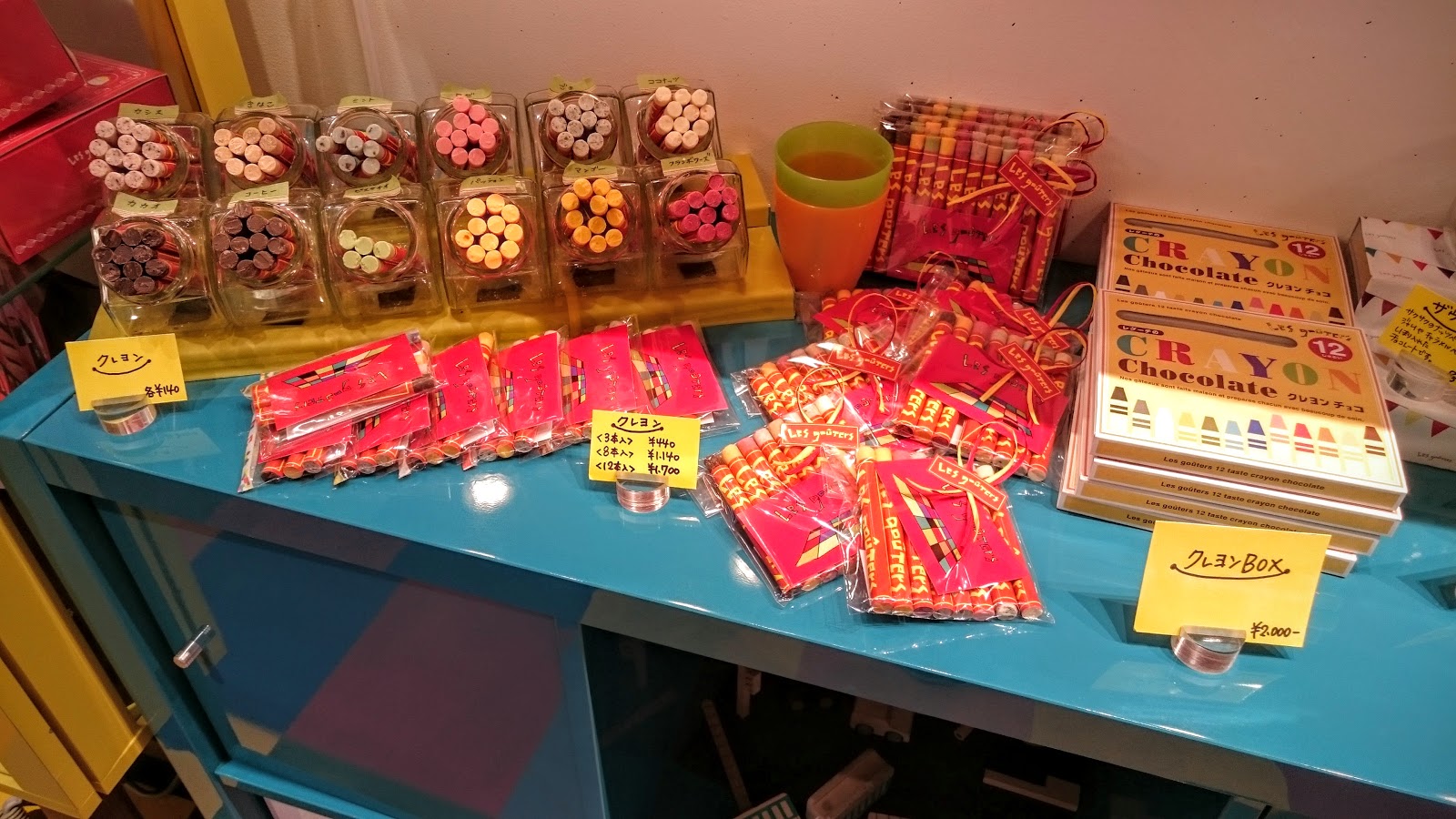 彩色蠟筆系列,每個都是不同的水果口味,是真的可以吃的蠟筆,不過價錢偏高,3隻蠟筆440日圓,8隻1140日圓,12隻1700日圓。