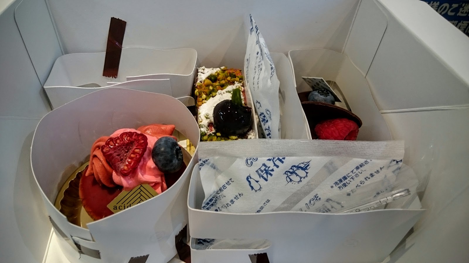 選好蛋糕,店員會花費一段時間幫你包裝,也會詢問大概過多久才會吃,然後建議你還是早點吃XD 如果說了很久時間,店員會提供有料加冰的服務,不然無料的冰一般大概可以保存一小時左右。