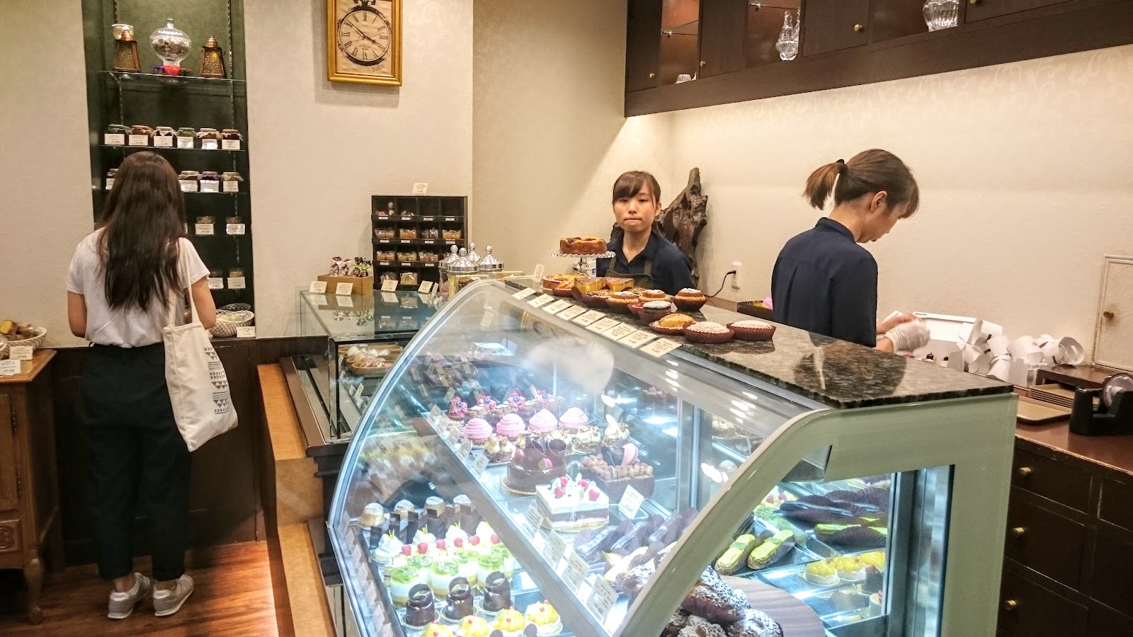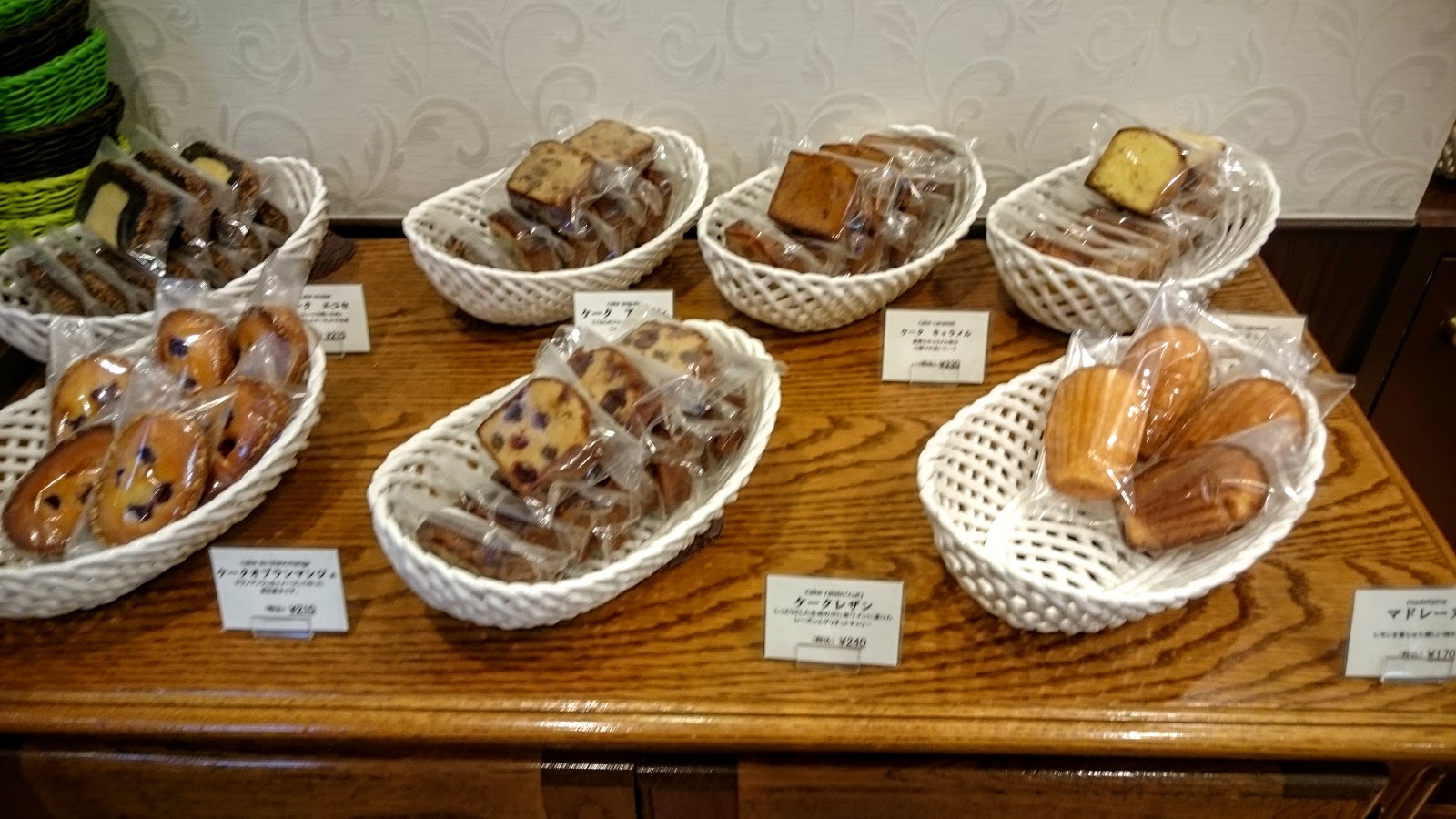 詢問過可以拍照,就把店裡有的東西都好好拍了一下,蛋糕種類非常多種,價位不算便宜,約都在500日圓出頭,馬卡龍則是一顆190日圓,其他也有各式糕點、餅乾,眼花瞭亂,喜歡甜點可以逛得很開心。