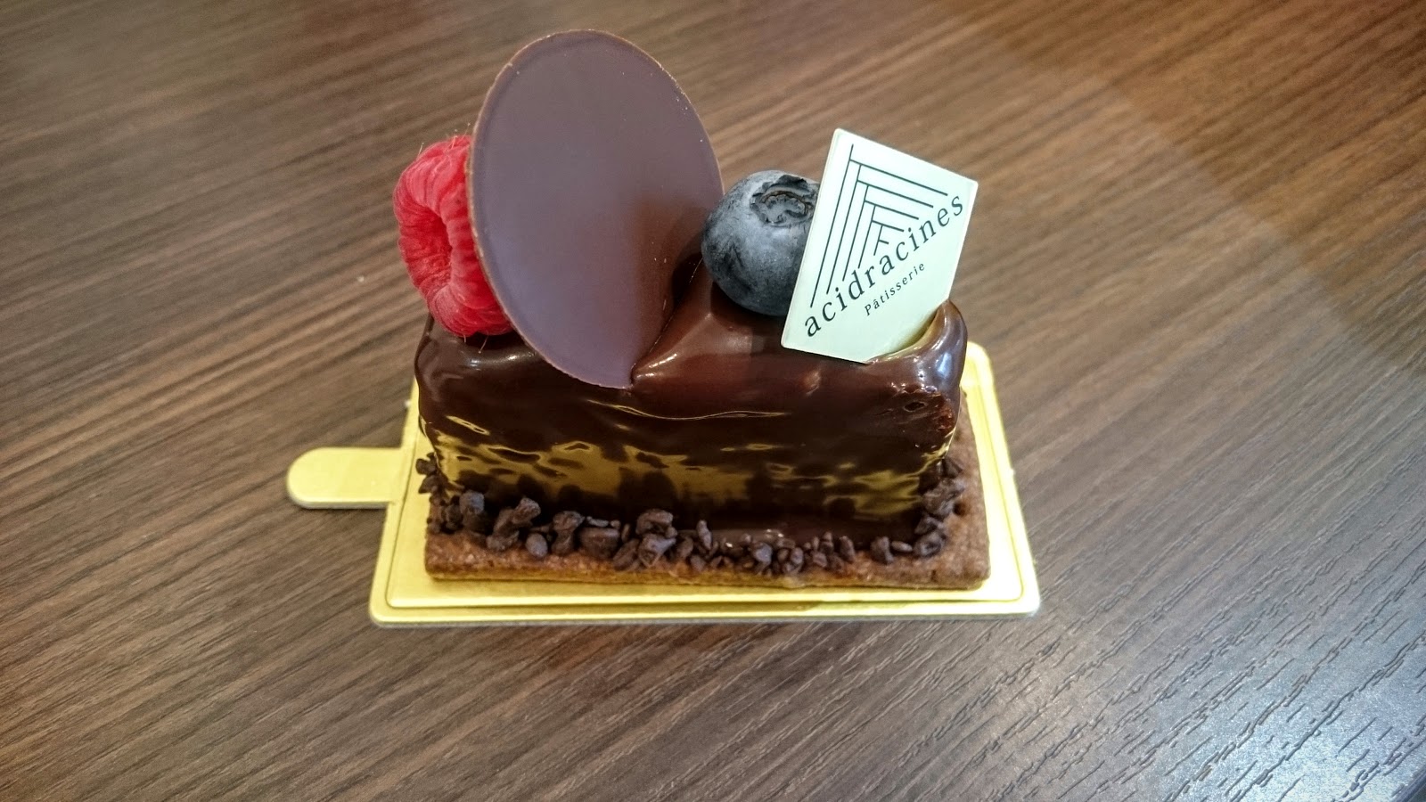 レプリス ,覆盆子巧克力蛋糕,餅乾上有著巧克力慕斯再撒巧克力當base,以為就是一般的夾層型,但在巧克力的外表下,是先有一層的覆盆子在最上面,接下來是巧克力混合莓果的慕斯,莓果的酸剛好中和巧克力的甜,這兩個果然很搭配啊! 下面的餅乾也好吃,同樣也緩和了甜度,再吃下一口也不覺得膩。