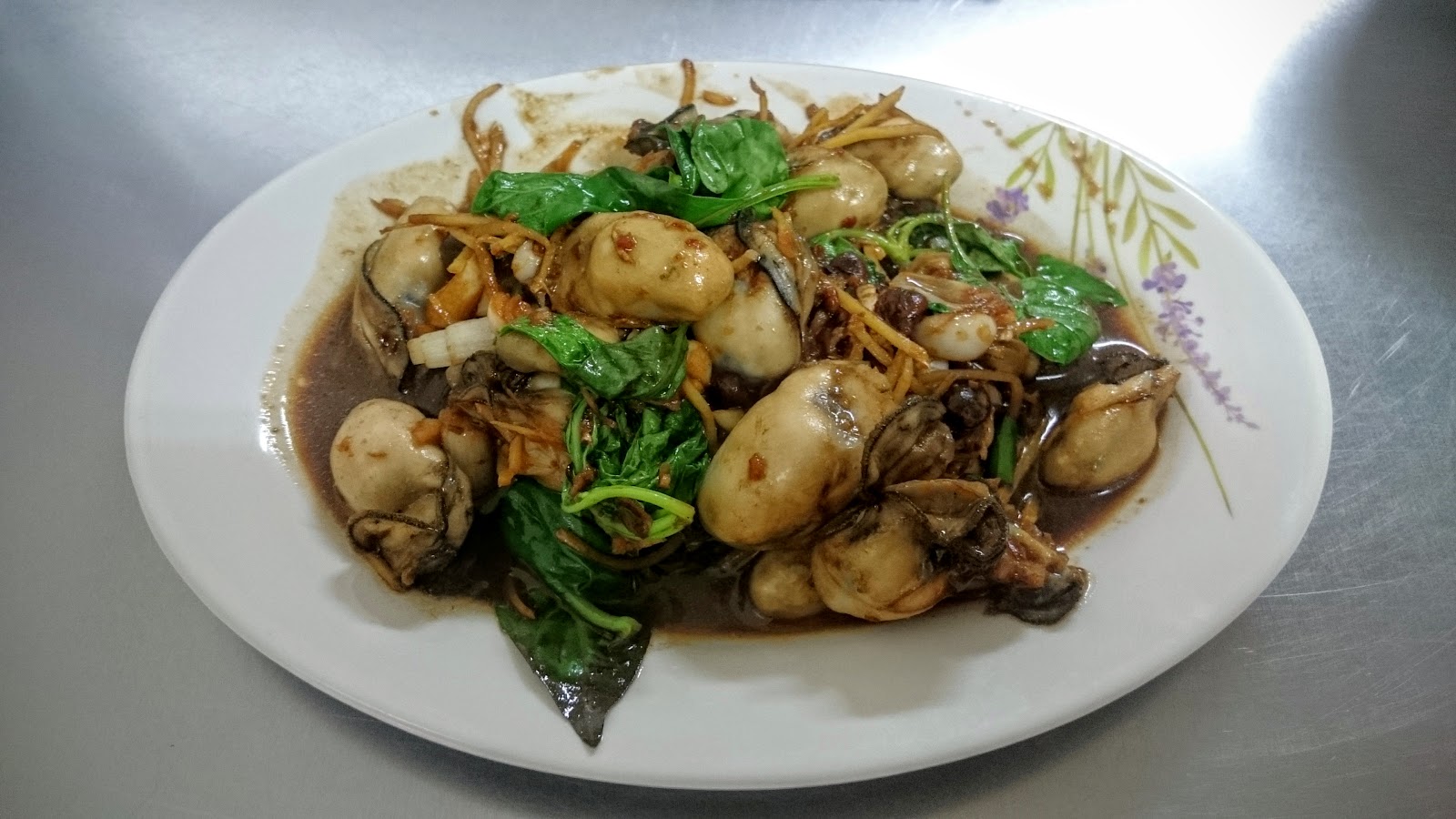 生炒蚵仔,100元,新鮮飽滿,都很大顆,好吃,沒什麼好挑剔的。