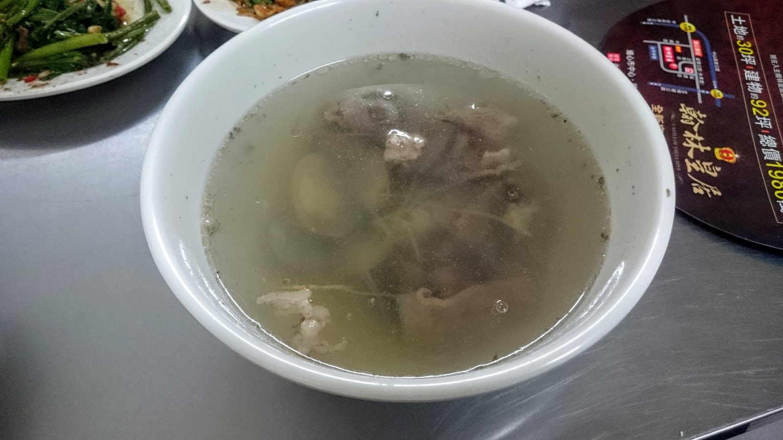 薑絲羊肉湯,60元,淡淡的中藥味,很舒服,羊肉大概放4-5片,蛤仔也有4-5顆,頗大碗的湯。