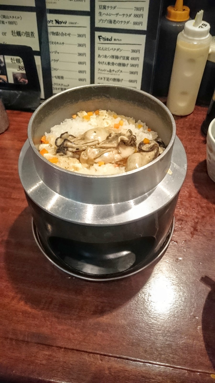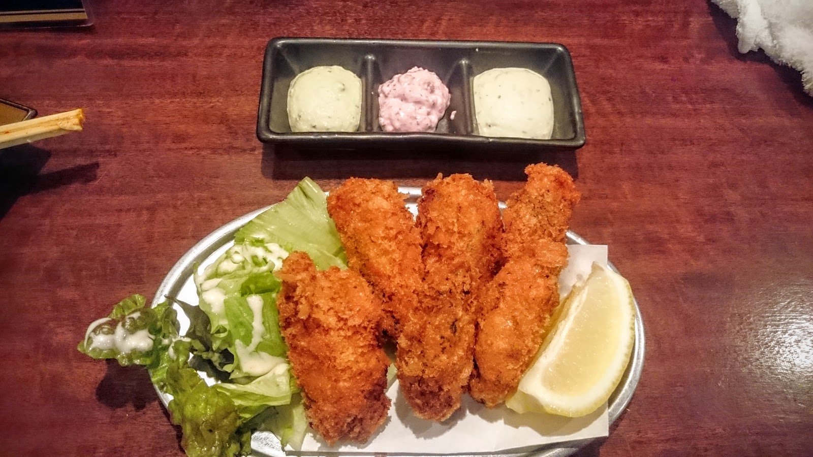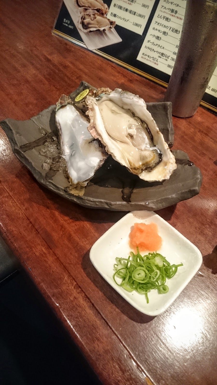 一直以來在大阪,都是住在動物園前附近的旅店,雖是雅房,但是乾淨整齊也便宜,不但離地鐵超近,附近也有玉出,非常方便,很多人也都會住在天王寺或者新今宮附近,遂來介紹一間牡蠣居酒屋,價格中等,喜歡吃牡蠣的人可以非常過癮,煎煮醃炸,各種作法都有,說是牡蠣十五吃也不為過。