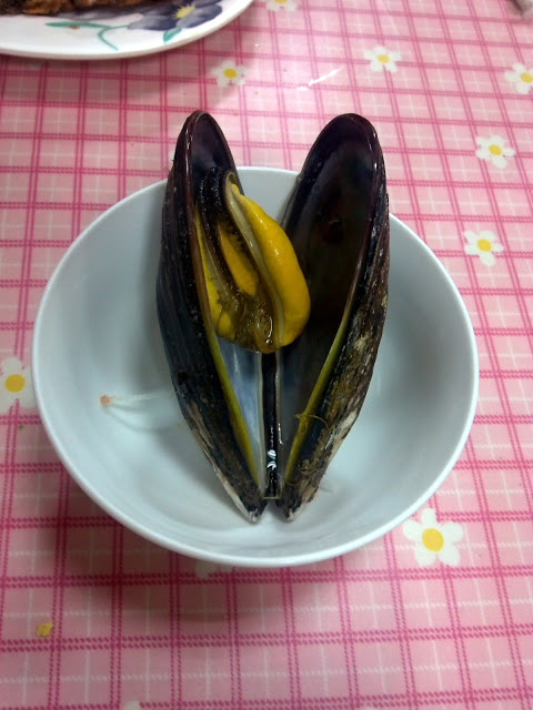 新鮮淡菜,整整一大盆,忘記價格是三百還是三百五,幾乎每個都像上圖一樣比碗還大,詢問老闆之後,老闆說是兩天就會空運一次來台灣,每批大小都不太一樣,很吃季節。