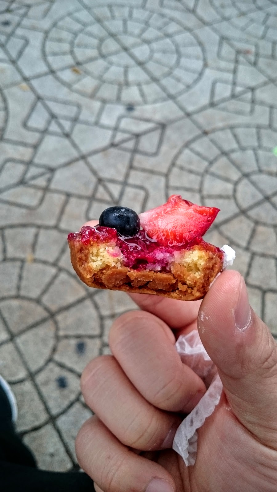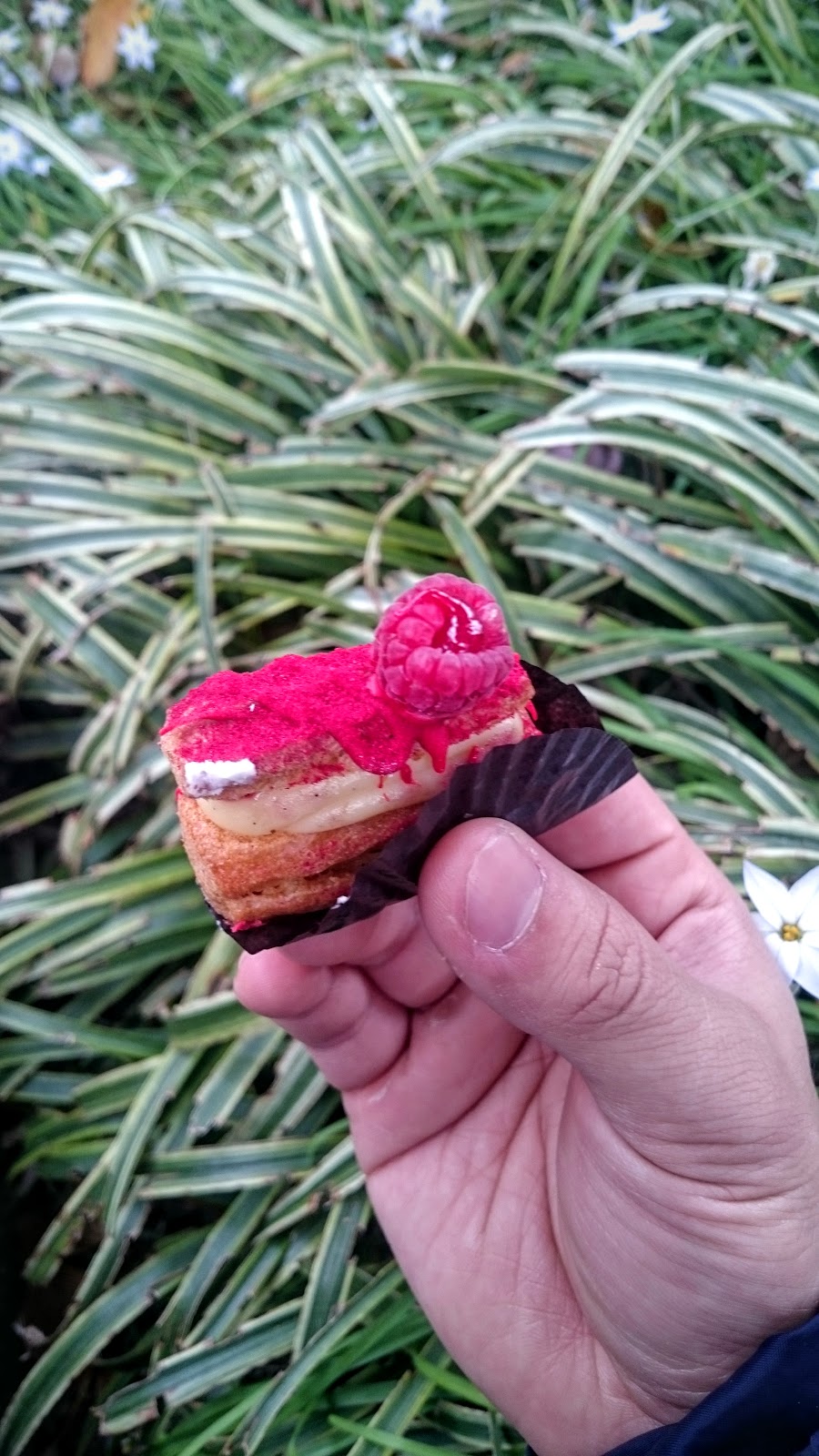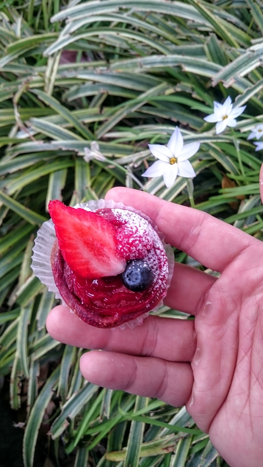 怕中午太熱影響蛋糕,直接就在旁邊的韌公園找了個地方坐著吃,實在太多太難選,每一個都是這麼精緻誘人,價位也不貴,一不小心才一個人就買了小的四個,大的兩個,每個蛋糕都被放得好好的,沒有位移,右下角的布丁,是用噴槍現場烤成焦糖化。